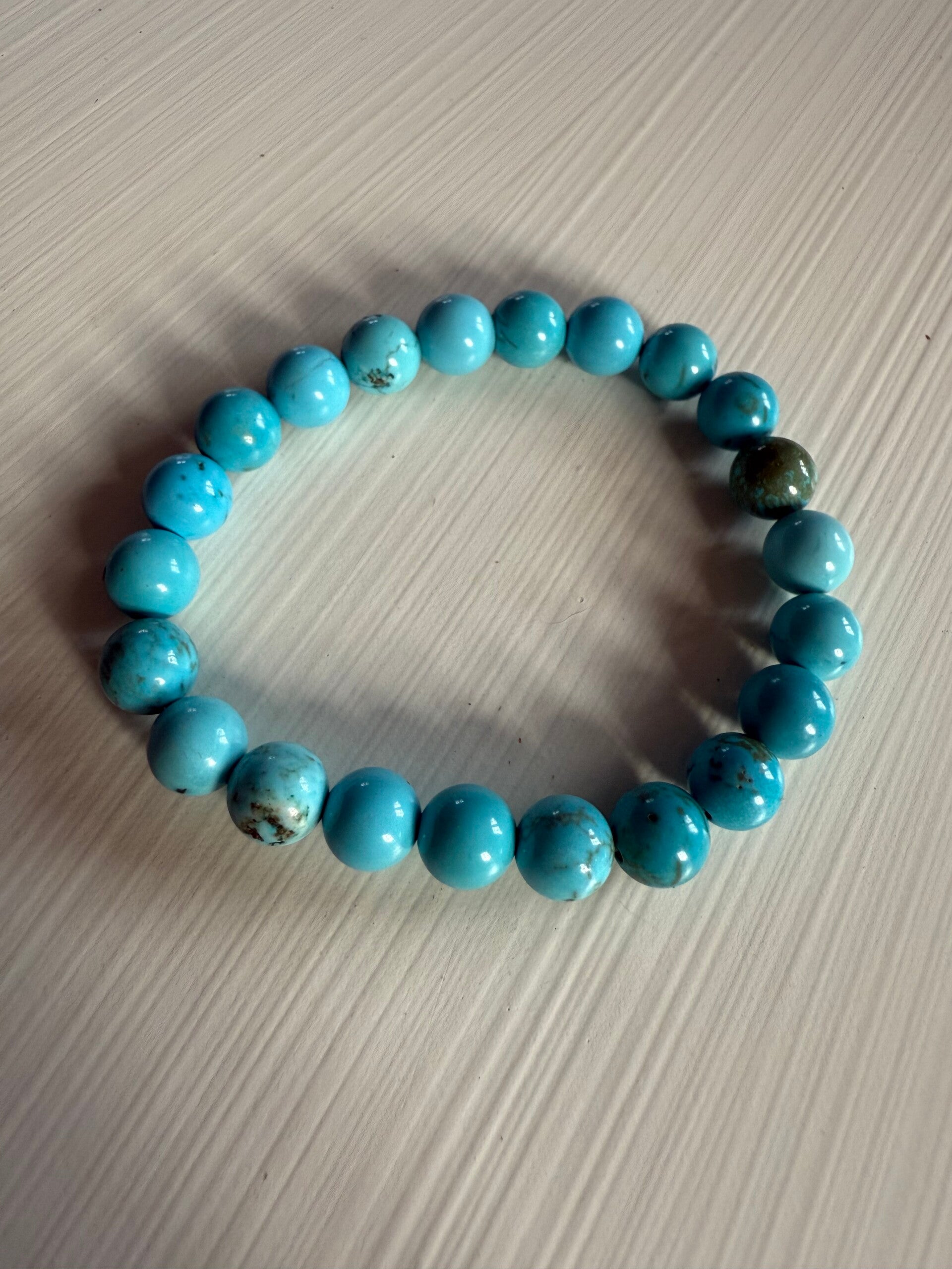 Couleur dominante : bleu turquoise clair, avec fines veines grises ou brunâtres.